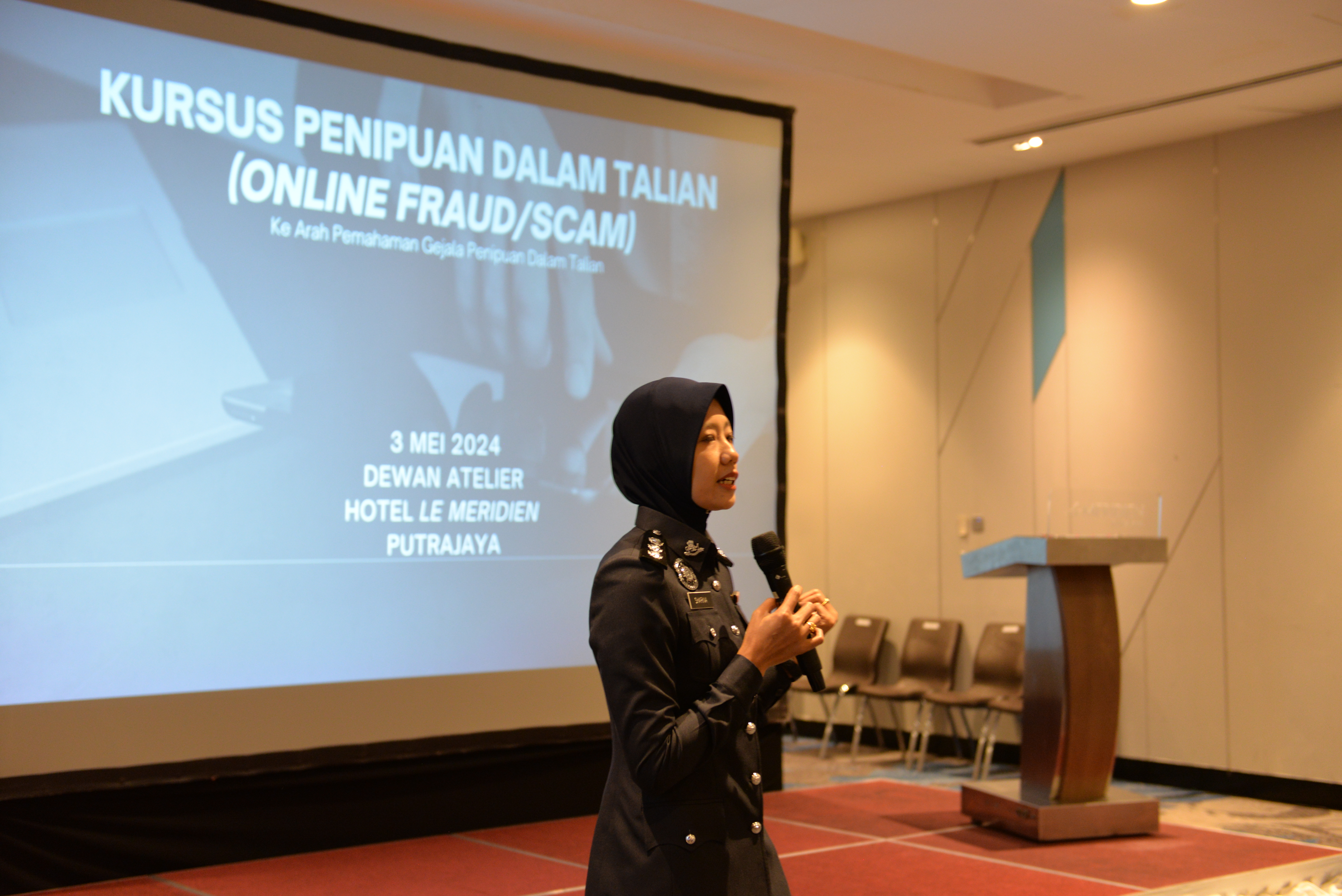 The "Online Fraud/Scam Course" was held on 3rd May 2024 (Friday) at the Atelier Hall, Le Meridien Putrajaya. This programme aimed to expose the participants an understanding of the symptoms of online fraud/scam.